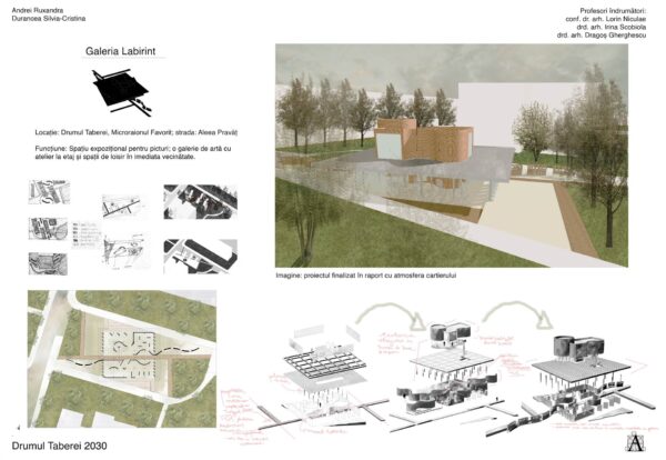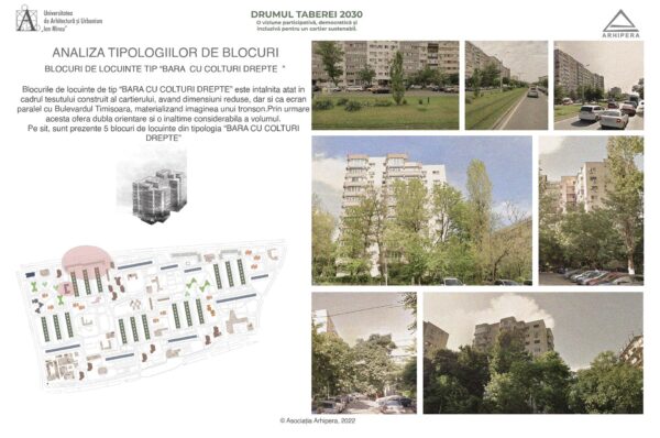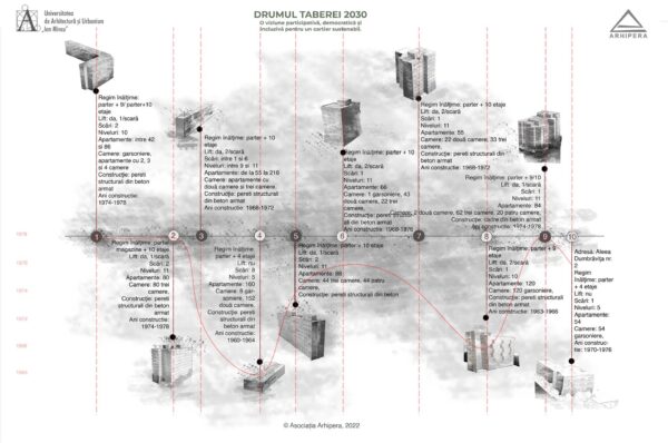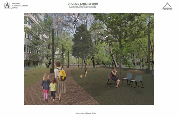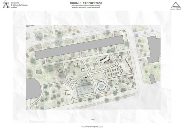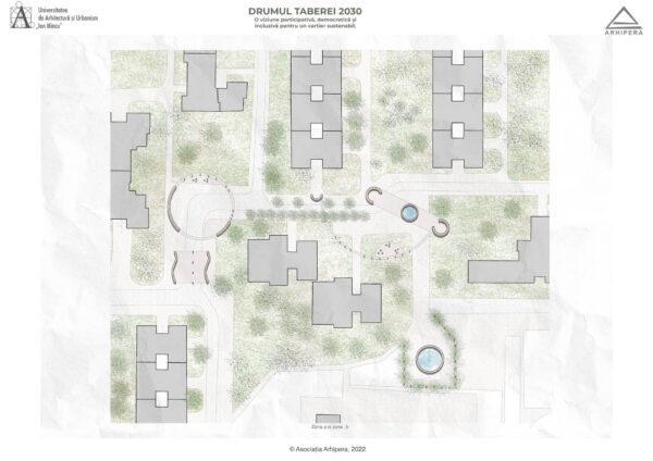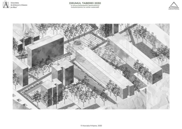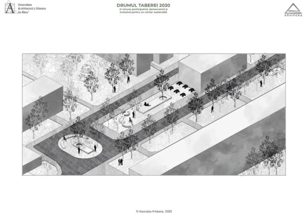 Drumul Taberei 2030 – un proiect imaginat de 37 de studenți – s-a născut din dorința de a imagina oportunități de dezvoltare a potențialului public al cartierului, într-un viitor în care mașinile stau parcate în parcaje subterane amplasate în lungul celor două mari bulevarde care delimitează, la nord și la sud, zona studiată: b-dul Timișoara și b-dul Drumul Taberei. Studenți din ani diferiți, care și-au unit ideile în cadrul atelierelor de vară Arhipera, au început să-și imagineze încă din luna august cum ar putea arăta cartierul într-un viitor apropiat. În octombrie, studenții din grupa 36 a Facultății de Arhitectură, din cadrul Universității de Arhitectură și Urbanism ,,Ion Mincu’’ s-au alăturat și ei demersului, și au început să studieze cartierul și să elaboreze propuneri de proiecte. Proiectele au fost coordonate de conf.dr.arh. Lorin Constantin Niculae, drd. Irina Scobiola și drd. Dragoș Gherghescu.