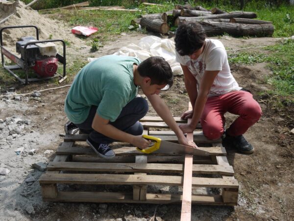 Silvia şi Irina sunt cele mai tinere membre ale echipei din vara asta şi se implică cu veselie şi spontaneitate în toate activităţile de pe şantier. Tot ce se întâmplă în jur, mediul, oamenii, misiunea are valoare în sine şi este un exemplu bun, o experienţă utilă pentru mai târziu – la fel cum este spiritul de echipă, atmosfera creatoare, importanţa motivaţiei. Şcoala altfel e (şi) aici. Pe unul dintre pereţii serei, desenul Silviei – ca o schiţă în cărbune a celor şase membri ai familiei – rămâne, pe lângă munca studenţilor, un semn al zilelor petrecute împreună construind şi crescând.