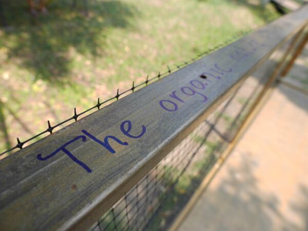 Mai întâi, zăreşti un container diferit de depozitat deşeuri, o metodă simplă, eficientă şi inventivă de a păstra parcul curat conferind un caracter jucăuş unei structuri funcţionale. Atunci când treci prin primul pasaj, opreşte-te o clipă şi observă copacul din dreapta – ce vezi când te uiţi în sus? Cuvintele lui Goethe sunt scrise pe balustradă – câţi ochi şi mâini le vor atinge? Şi câte minţi şi suflete vor schimba? Urmează un tablou care aşteaptă să-l descoperi : Peisaj cu copac şi bancă albastră; în timp ce te sprijini de balustradă pentru un moment de linişte şi un pic de umbră, priveşte cuibul de berze din faţa ta. Câteva trepte de piatră te conduc către o bancă, un loc de odihnă în inima parcului. Bătrânul cu acces limitat la banca de la intrarea în parc are acum posibilitatea de a se plimba pe poteca principală, de a beneficia de întregul spaţiu şi a se bucura de peisaj. Puţin mai departe, un băieţel a luat în stăpânire mica scenă acoperită de la capătul aleii, un loc pentru spectacole viitoare. Panoul pictat reprezintă un final împodobit cu flori al aleii – citeşte citatul în timp ce cauţi originalitatea ascunsă în fiecare element al spaţiului natural şi reţeaua complexă de relaţii dintre om şi natură. Sub umbra merilor este un alt refugiu – aşează-te pe unul dintre scaunele tubulare situate faţă în faţă, simte aroma fructelor şi adierea uşoară. În apropiere, o masă înaltă, neagră, dreptunghiulară reprezintă un cadru pentru o reuniune degajată.